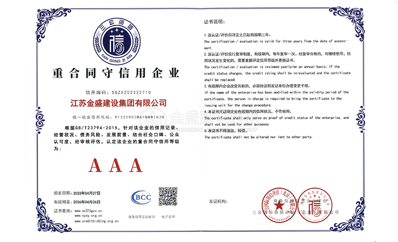• 3A級資信等級證書